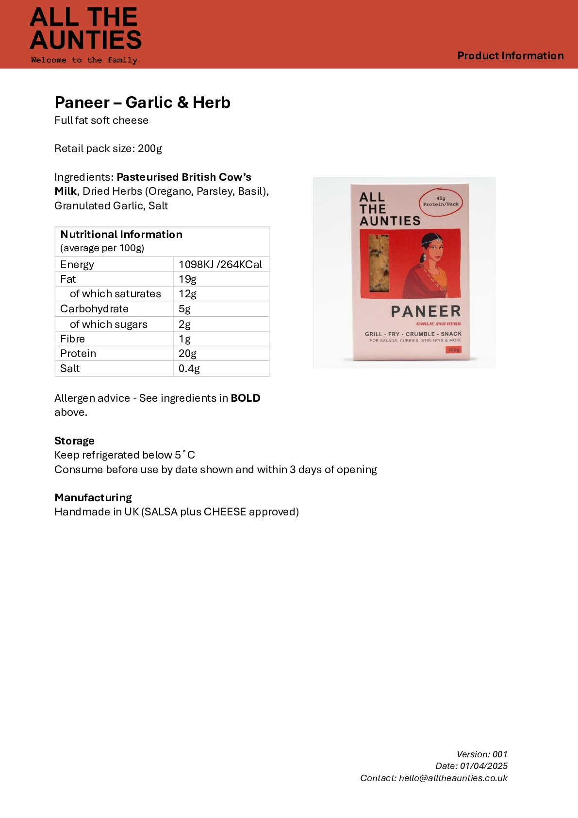 All The Aunties paneer is made from 100% British Milk, contains twice the amount of protein as tofu at 40g per pack, and is low carb. This delicious Mediterranean inspired paneer is the perfect quick meal option for the whole family.