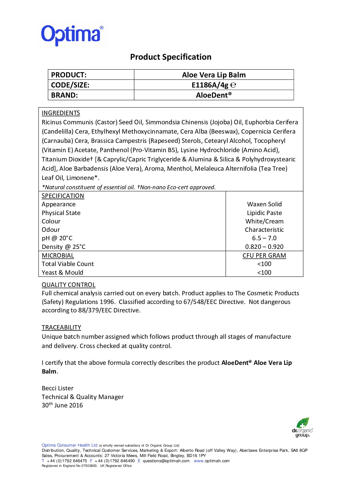 Formulated with Aloe vera extract to soothe and moisturise the lips. Contains lysine, an essential amino acid, to promote healthy lips, enriched with vitamin E and pro-vitamin B5. Protection from the sun's harmful UVA & UVB rays.