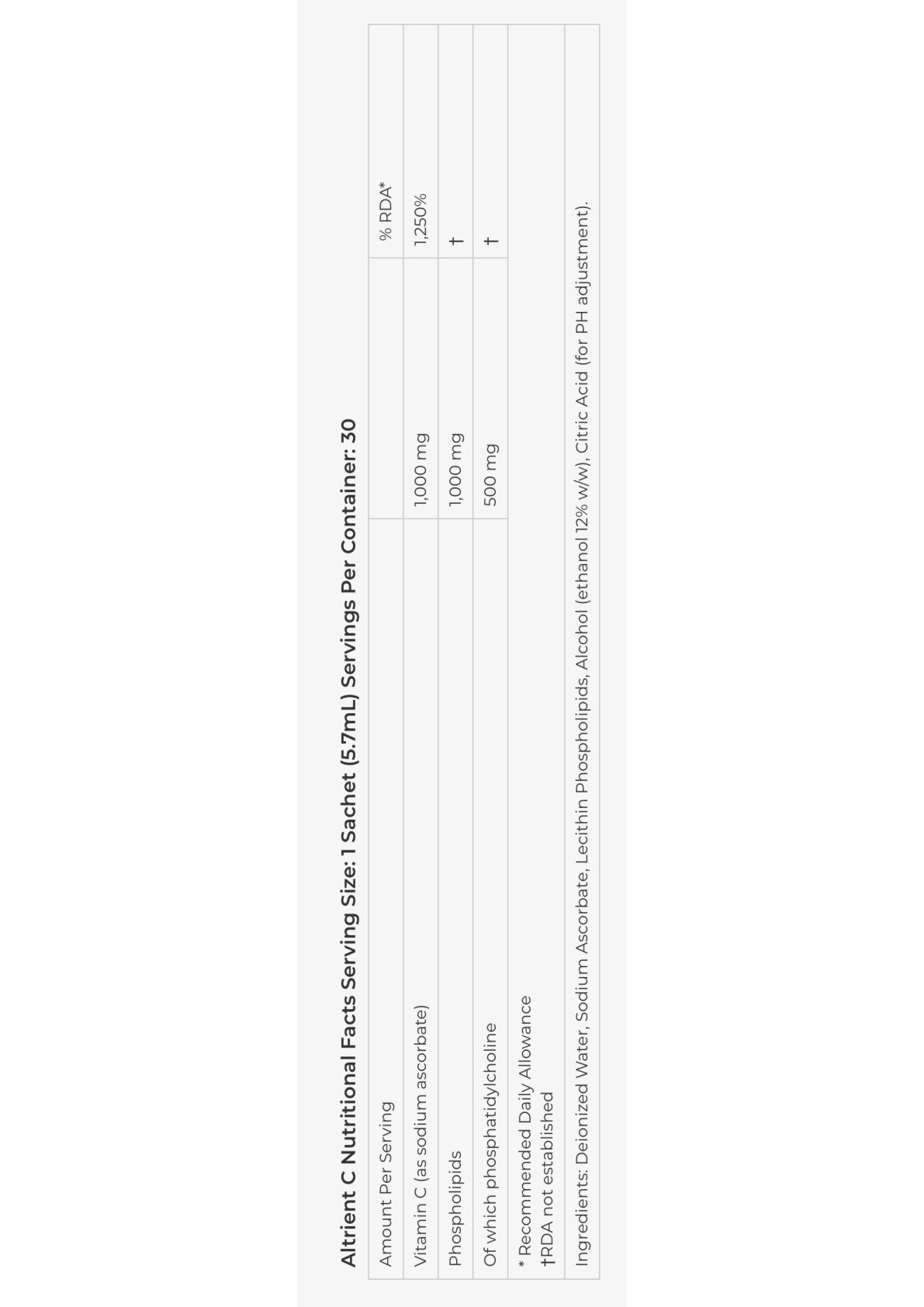 Altrient is independently tested clinically proven gel liposomal vitamin c sodium ascorbate is sugar free and due to the liposomal encapsulation is gentle on the stomach. The leading liposomal vitamin c which improves skins elasticity by 61 percent over 3 months. Not only on your face.