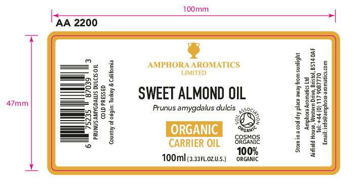 Organic Sweet Almond Oil is an incredibly versatile carrier oil. It is an widely recognised choice for massage therapists due to its ability to stay on the skins surface long enough for massage, aiding the movement of the hands. It naturally conditions the skin even when used on its own and it has long been believed to help promote younger looking skin.