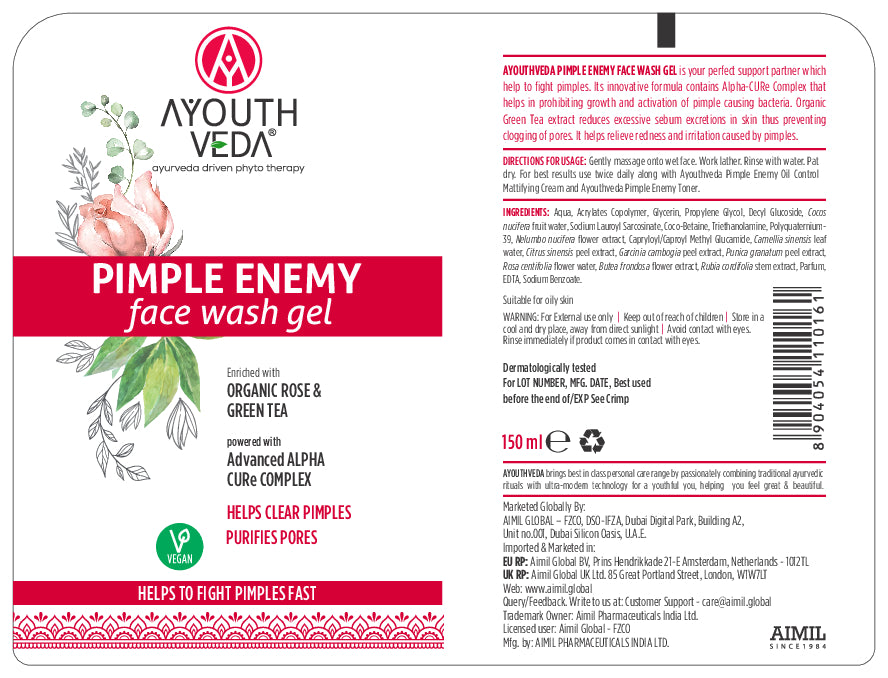 Combat acne effectively with Ayouthveda Pimple Enemy Facewash Gel. Enriched with natural ingredients, this gel deeply cleanses pores, removes impurities, and targets pimples for a clearer, healthier complexion. Its soothing formula calms irritation and redness while regulating excess oil, leaving skin refreshed, balanced, and comfortable. Perfect for daily use, it provides an easy and effective solution for acne-prone skin