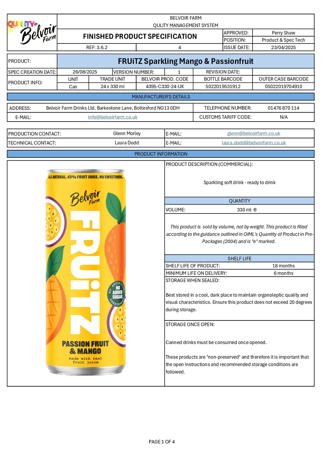 FRUiTZ Passion Fruit & Mango is bursting with 45% real fruit and absolutely nothing artificial. Full of fresh fruity flavours and 100% natural. We've carefully blended a sweet and tropical Passion Fruit Juice with a rich & syrupy Mango Juice, added some apple juice for some natural sweetness and a touch of lemon juice to help balance the flavours for a deliciously refreshing drink all the family can enjoy.