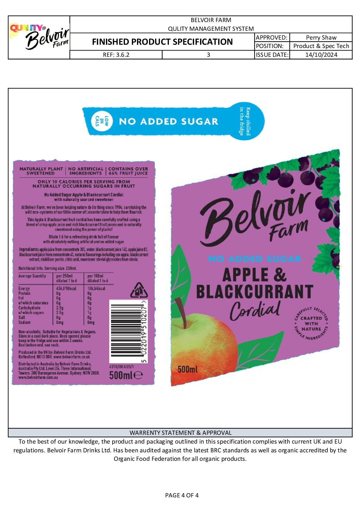Discover the vibrant taste of nature with Belvoir Farm's No Added Sugar Apple & Blackcurrant Cordial. Bursting with the rich, tangy flavour of juicy blackcurrants perfectly balanced with crisp apple notes, this naturally refreshing drink is sweetened using the power of plants - so only 10 calories per serving! Made with over 66% real fruit juice and crafted without artificial sweeteners, flavours, or preservatives, it's a delicious healthy choice the whole family can enjoy.