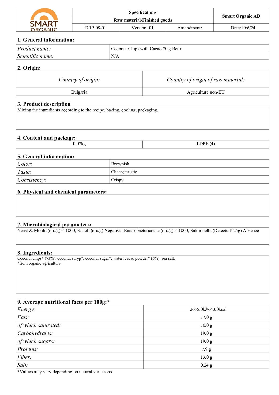 Flakes of organic-certified Sri Lankan coconuts, sprinkled with a Bett'r mix of coconut blossom nectar and Peruvian cocoa powder, baked till deliciously crunchy. Enjoy as a guilt-free treat on its own or sprinkle on top of creamy or baked desserts, ice cream or even your selected breakfast bowl.