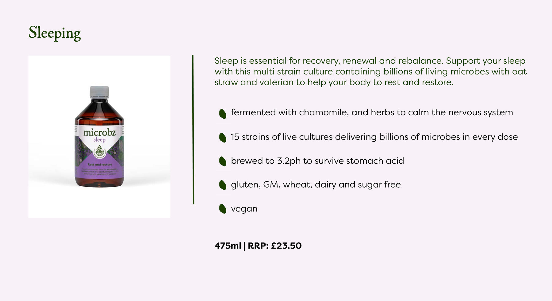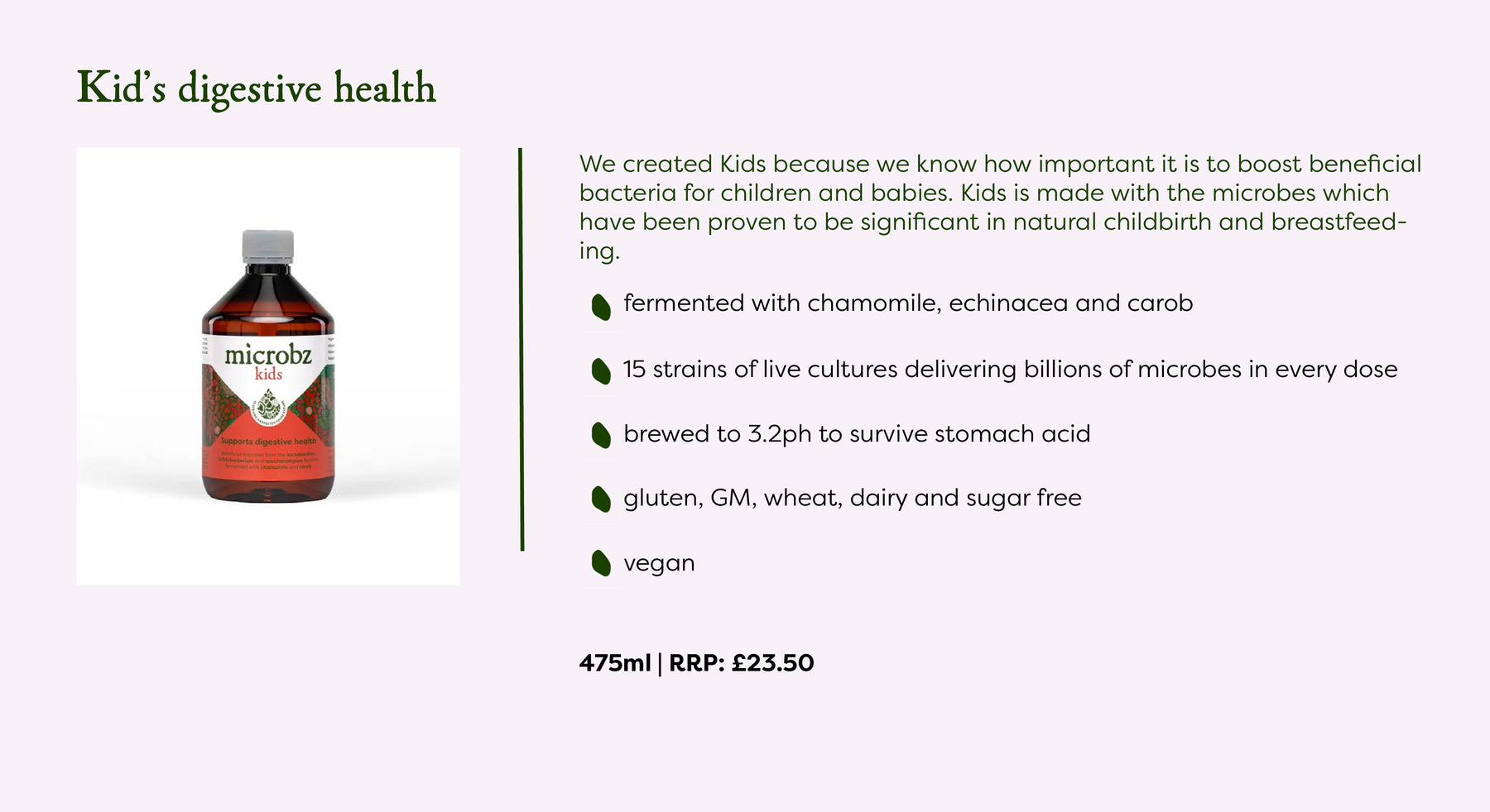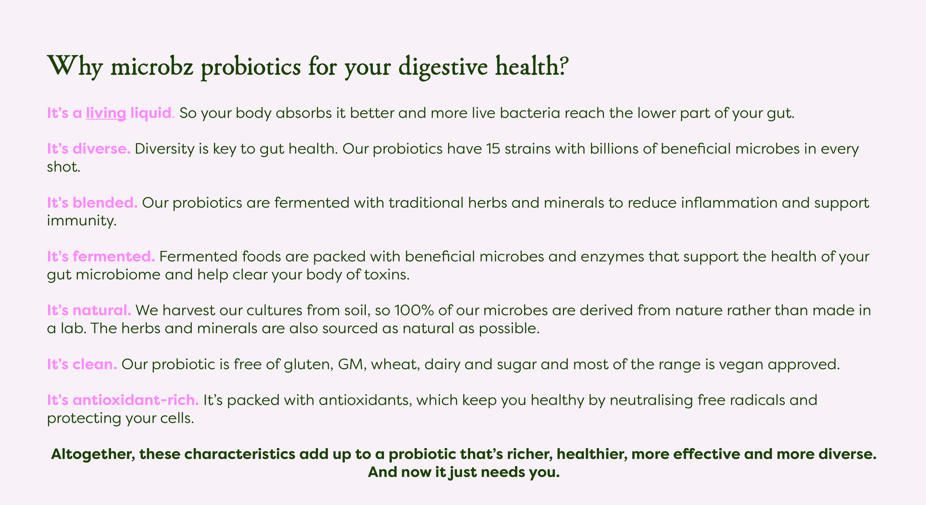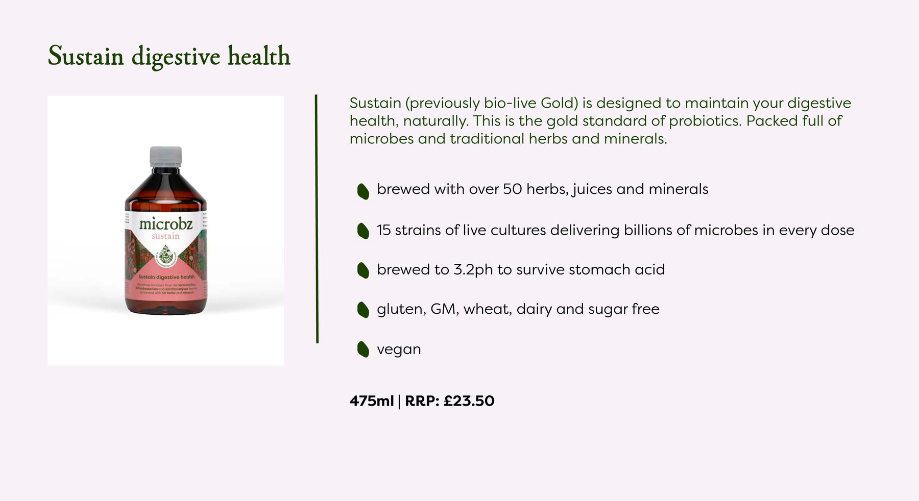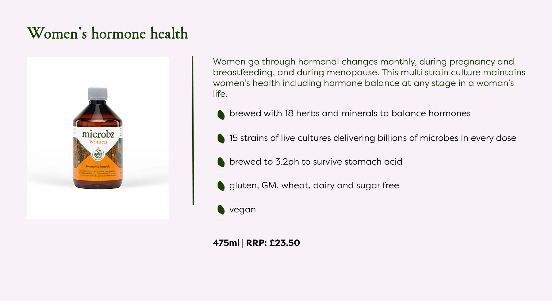 A living liquid, fermented with 15 families of carefully selected effective microorganisms, brewed with malt for a lighter flavour, with herbs and minerals especially chosen for woman. Gluten free (less than 20 ppm gluten), GM, wheat, dairy & sugar free. Vegan and Vegetarian approved.
