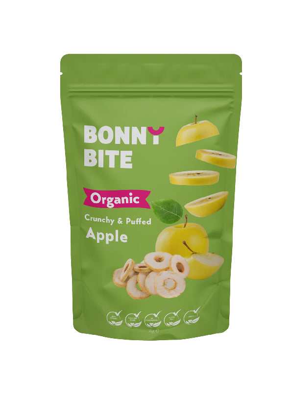 Organic fruit at peak ripeness, dried, then puffed into a naturally sweet, crunchy snack to keep it fresh like the day it was picked. Exploding with real fruit flavour and packed with nutrients, Bonny Bite puffed apples might just be your new go-to snack.