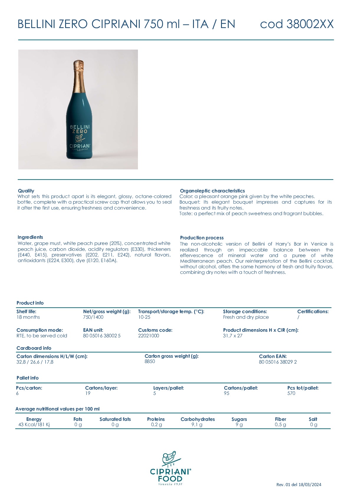 A non-alcoholic masterpiece that captures the essence of refined indulgence. For those who appreciate the finer things in life, the Bellini has long been a symbol of sophistication and refined taste. Now, Cipriani is proud to introduce Bellini Zero, an alcohol-free reimagination of this iconic cocktail that allows everyone to experience its timeless elegance.