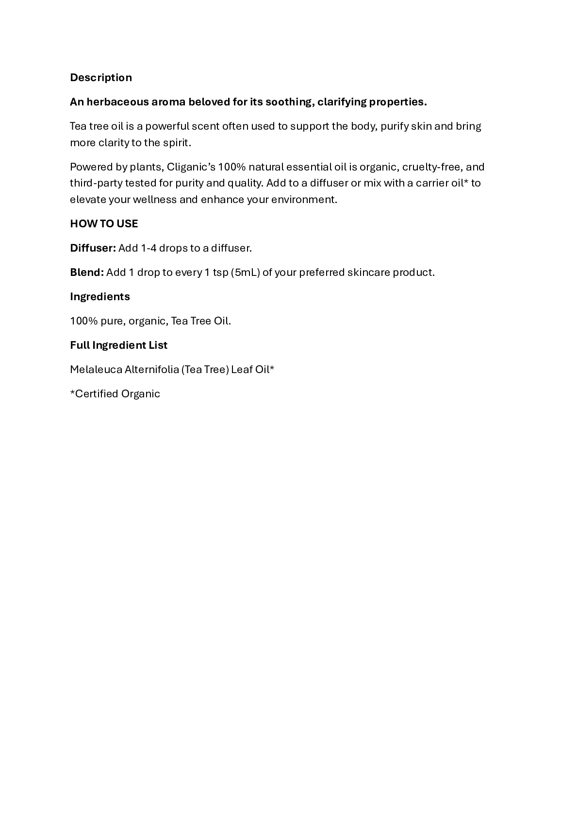 Cliganic Organic Tea Tree Oil 10ml