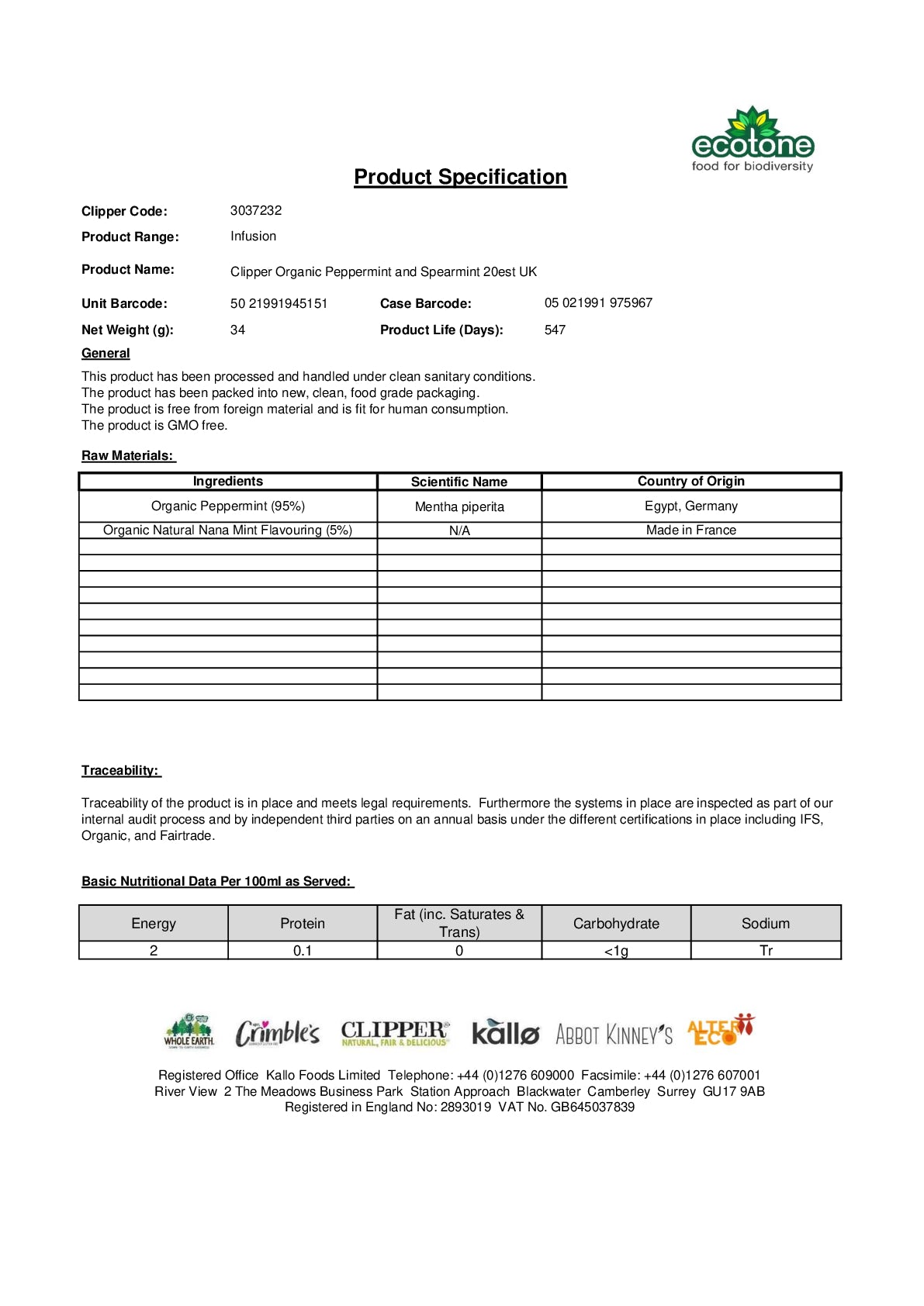Peppermint & Spearmint flavoured organic infusion. A soothing mint blend made with pure, natural ingredients and a clear conscience. The cool, menthol taste of peppermint