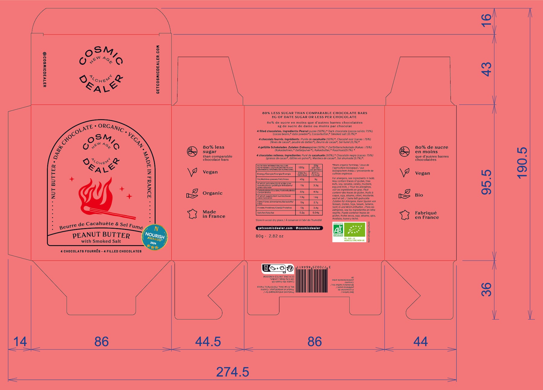 80% less sugar than other chocolate bars.?Less than 2g of natural date sugar per square.?Five organic, vegan ingredients only: completely clean and short ingredient list. Our nut butter chocolates minimal effect on our blood sugar levels when tested. In recyclable paper sachets. Ethically made: with traceable, single origin fine cacao and low-intervention artisanal production methods, hand-made in France.