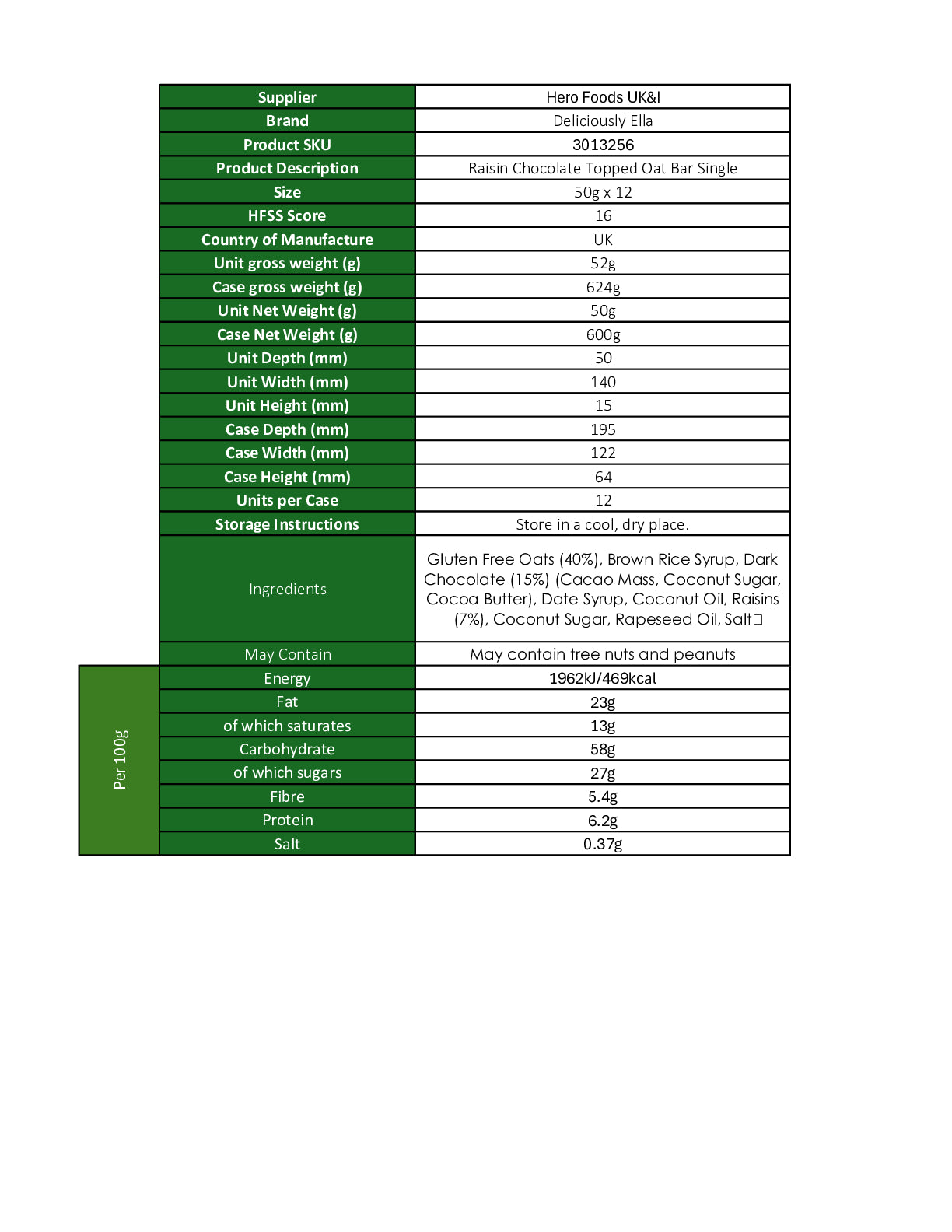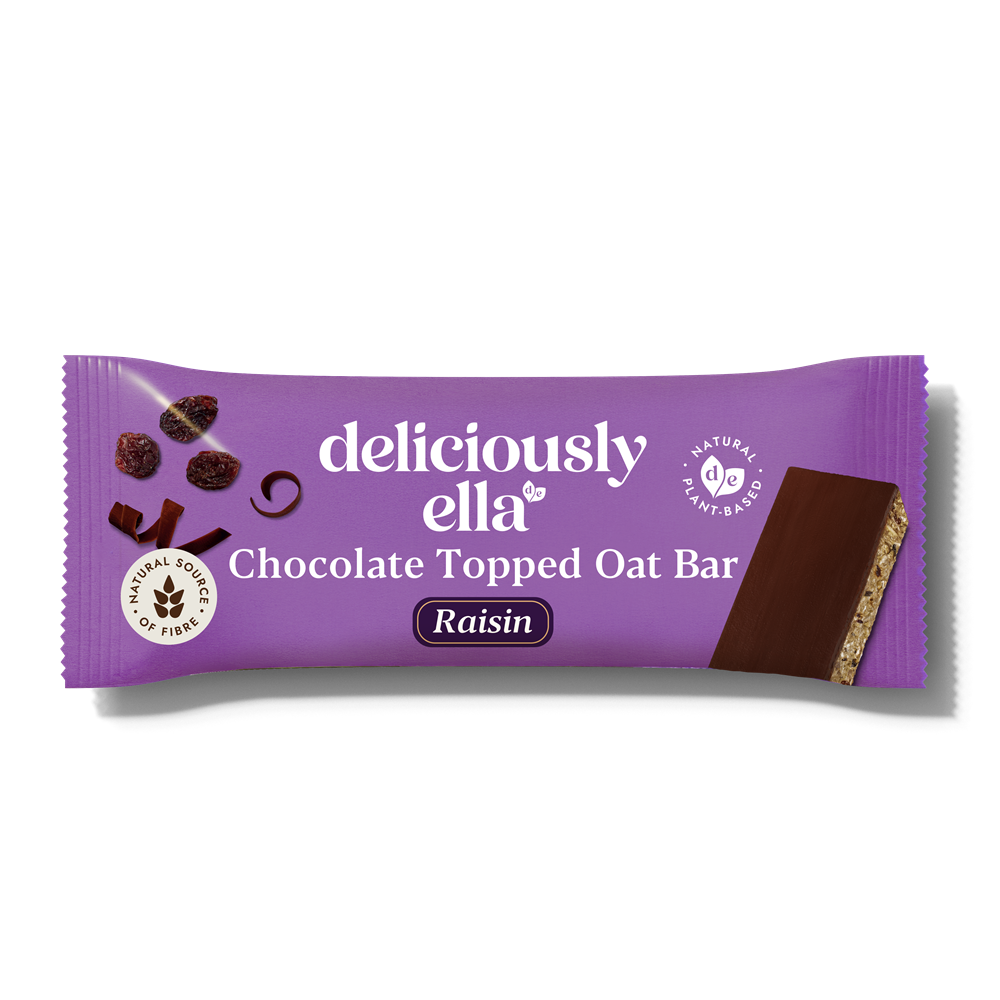 Our Raisin Chocolate Topped Oat Bar flapjacks come with small raisin pieces and a thin layer of smooth, vegan dark chocolate.
