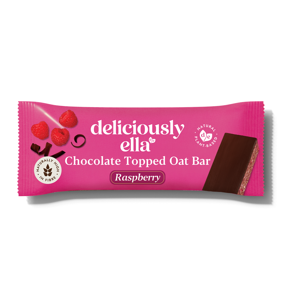 Our Raspberry Chocolate Topped Oat Bar flapjacks come with small raspberry pieces and a thin layer of smooth, vegan dark chocolate.