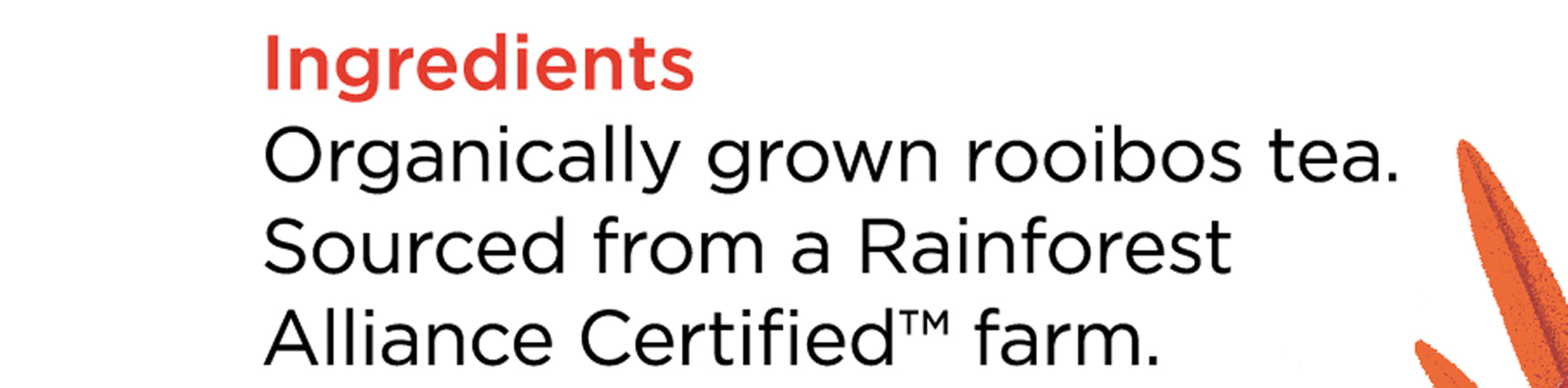 Bright and lively, naturally caffeine free full flavoured rooibos, harvested by hand and cured in the sun. Perfect at breakfast, throughout the day or at night.