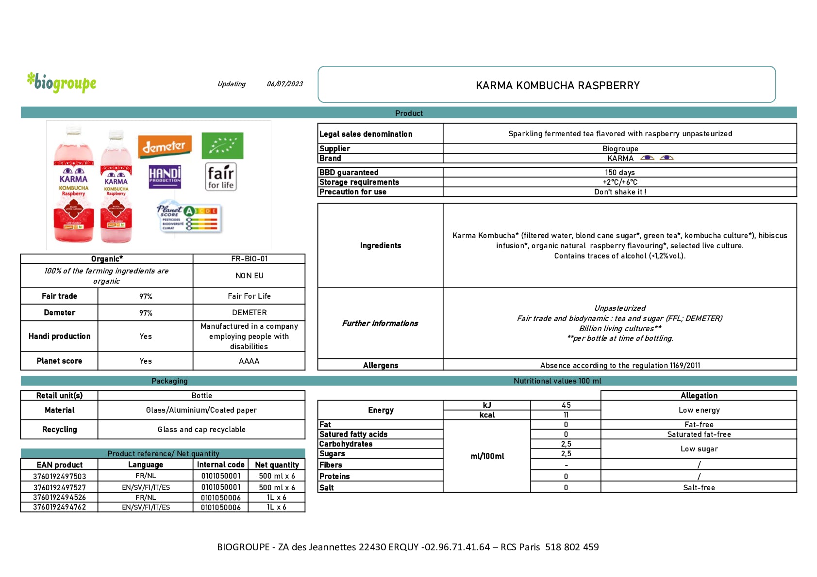 Karma Kombucha Raspberry 500ml (Sold in multiple of 2)