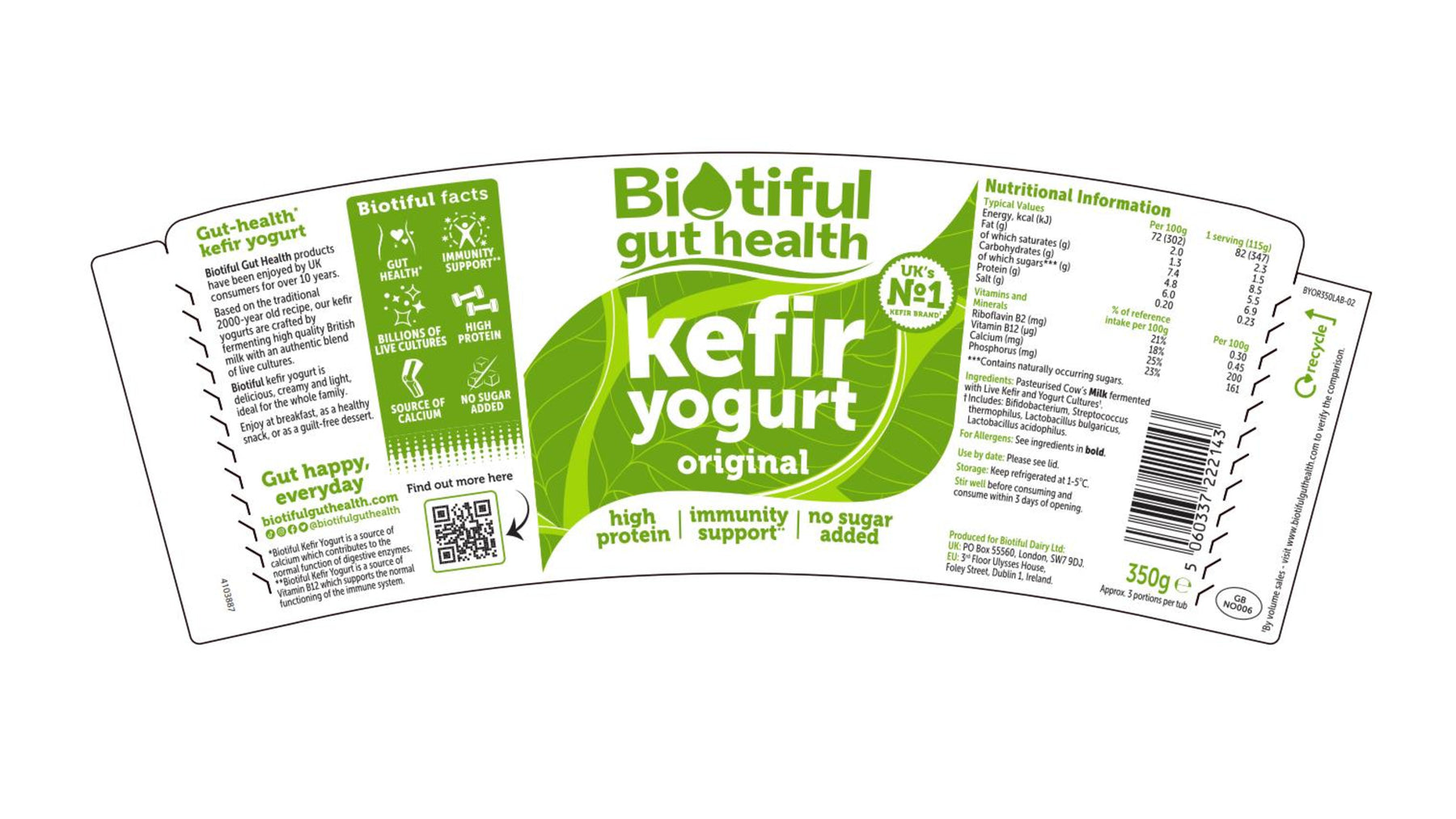 Biotiful Gut Health Kefir Yogurt Original is creamy yet light, and packed full of live cultures which help to support your immunity*, naturally.