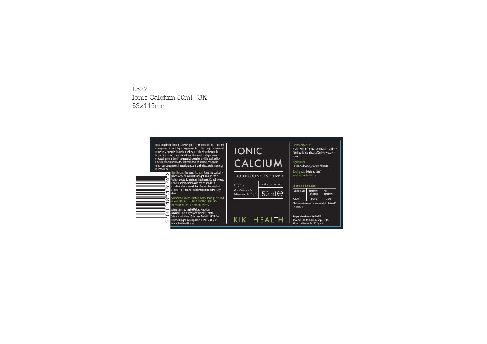 KIKI Health Ionic Calcium Liquid Concentrate - 50ml