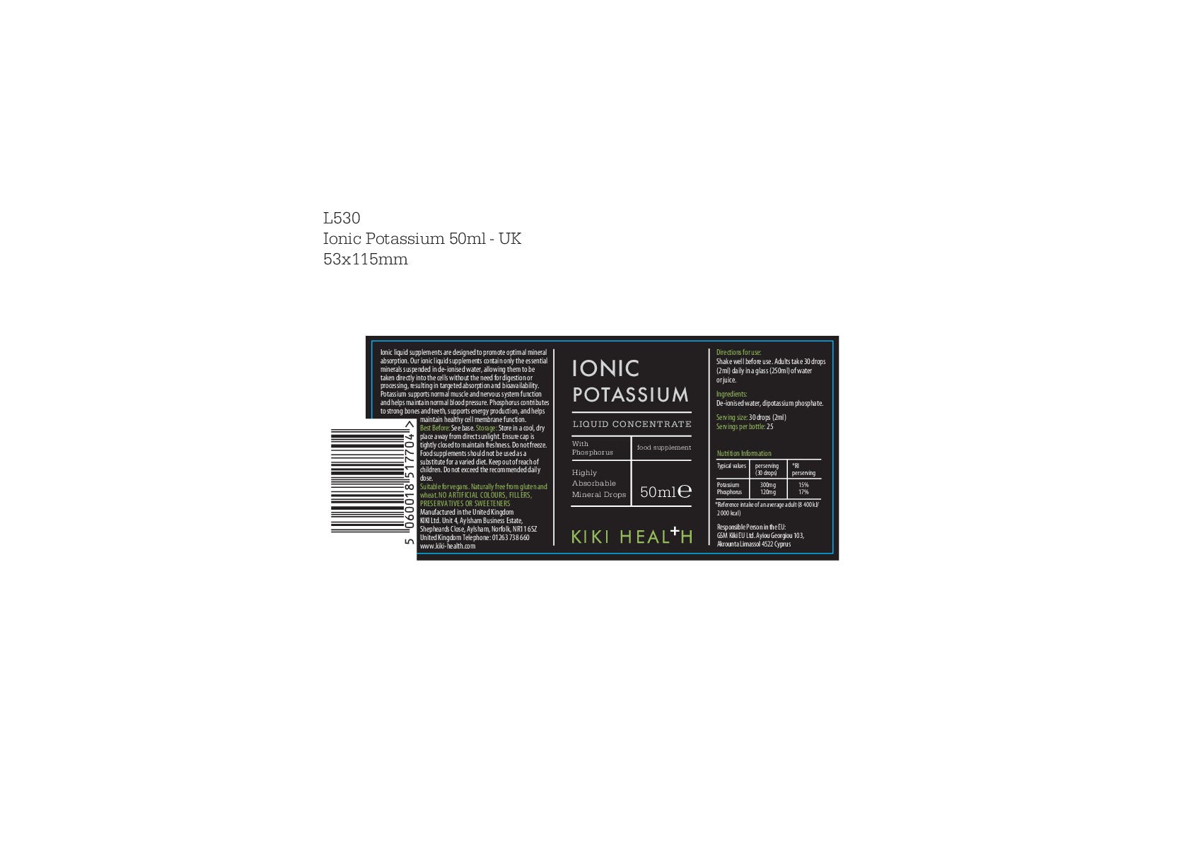 +300mg of potassium (15% RI) and 120mg of phosphorus (17% RI) per serving