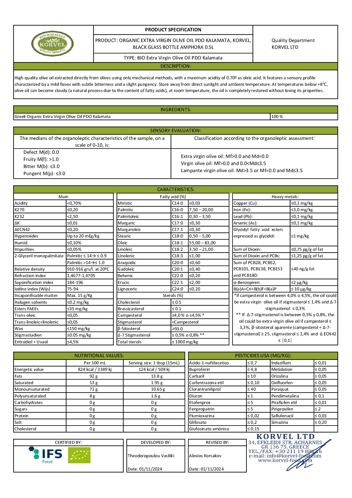Order Now: Indulge in the luxurious taste and exceptional quality of Greek Extra Virgin Olive Oil Premium Organic PDO Kalamata by KORVEL. This extraordinary olive oil will elevate your culinary creations and bring a touch of Greek tradition to your table. Order today and discover the essence of Greece in every drop.