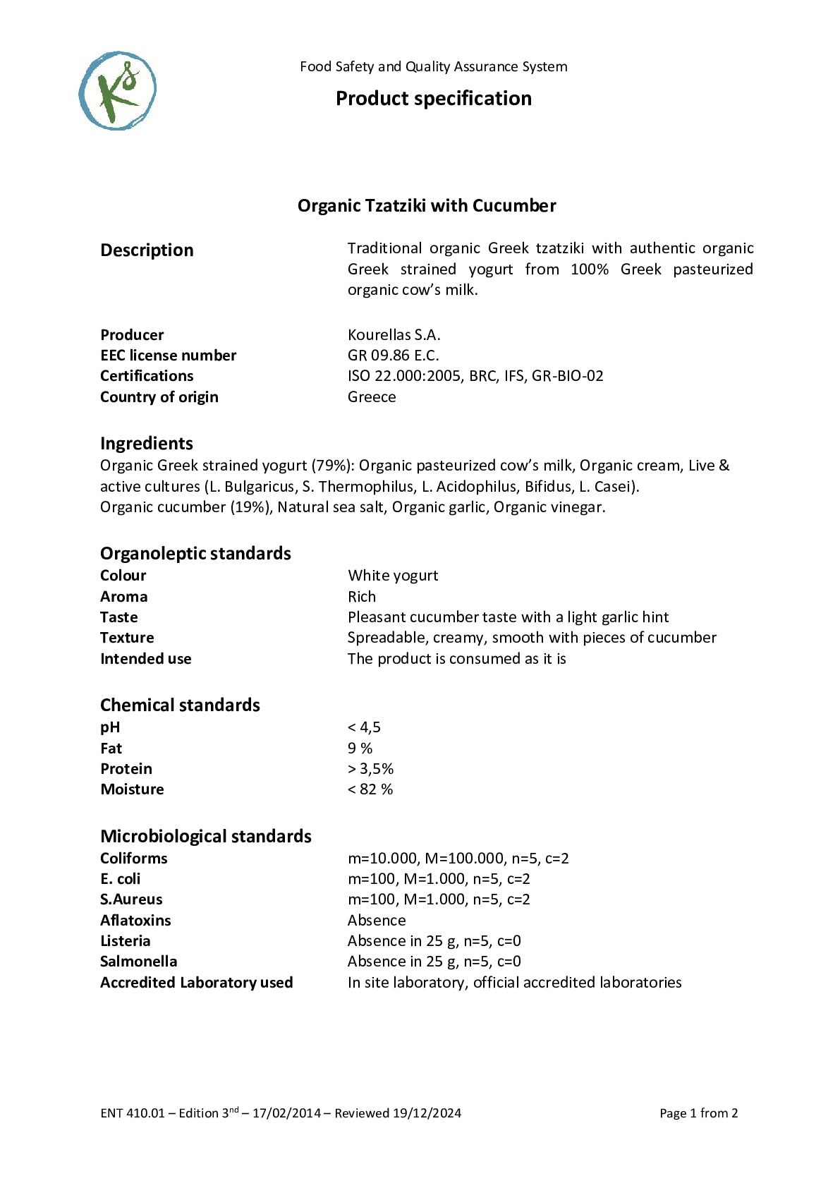 At the Kourellas family dairy, we created our unique Organic Tzatziki following the traditional recipe. We blend natural local ingredients with our authentic Greek strained yoghurt, without any additives or preservatives.