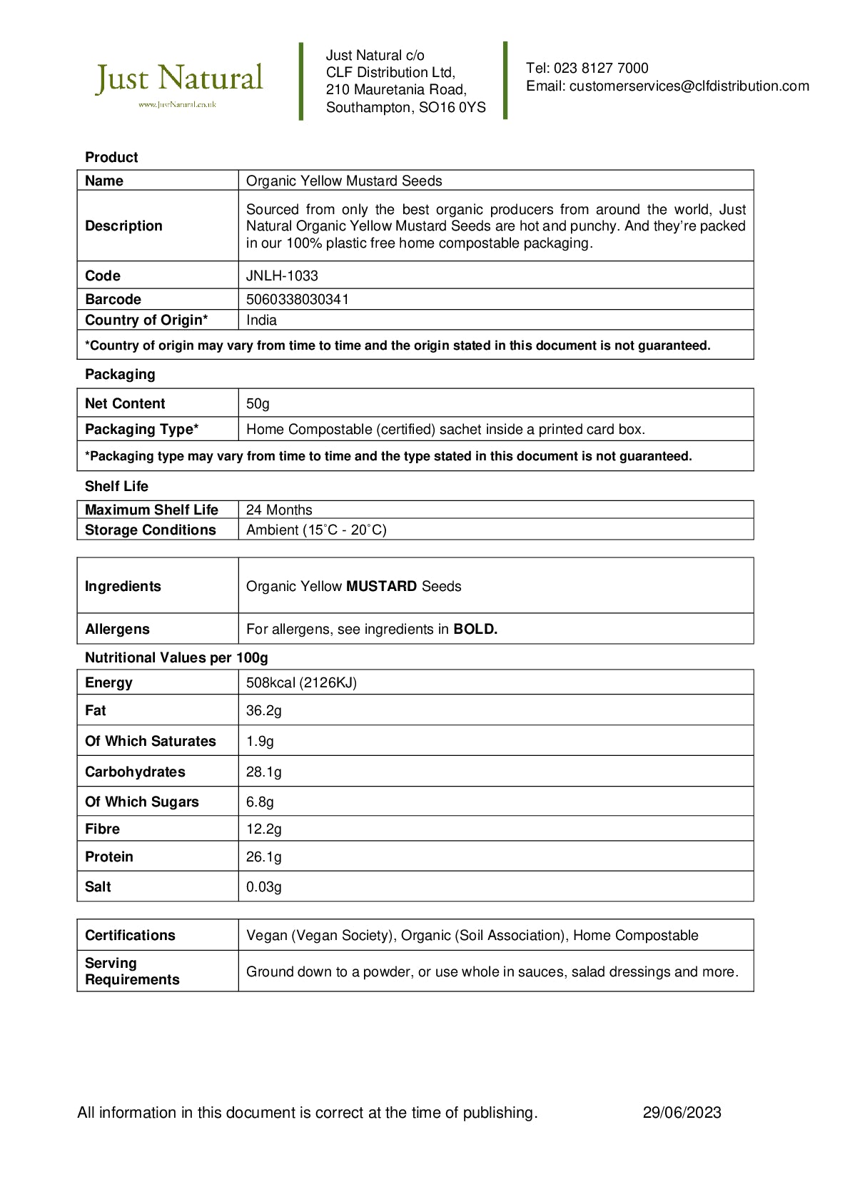 Sourced from only the best organic producers from around the world, Just Natural Organic Yellow Mustard Seeds are hot and punchy. And they're packed in our 100% plastic free home compostable packaging.