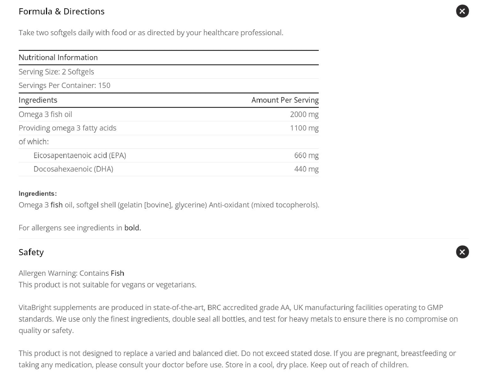 660mg EPA + 440mg DHA per 2 softgels