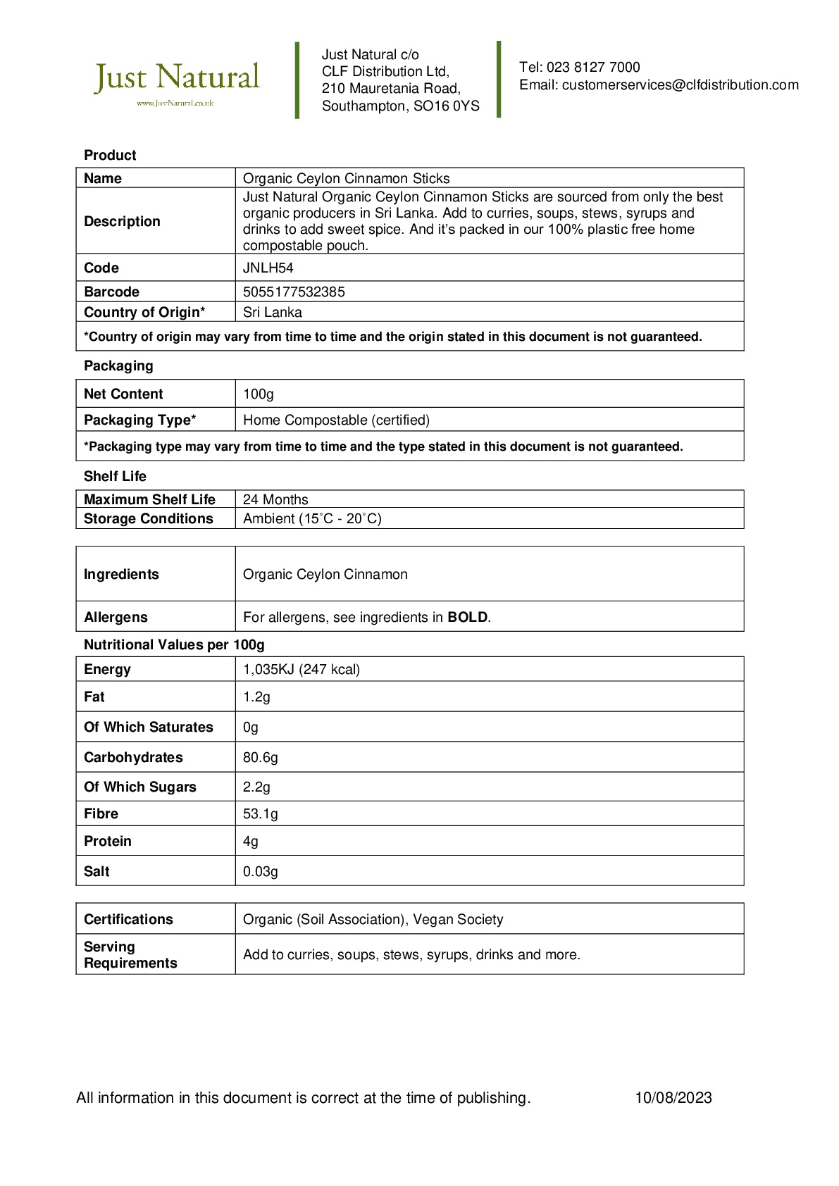 Just Natural Organic Ceylon Cinnamon Sticks are sourced from only the best organic producers in Sri Lanka. Add to curries, soups, stews, syrups and drinks to add sweet spice. And it's packed in our 100% plastic free home compostable pouch. For nutritional information and ingredients, click Further Information.