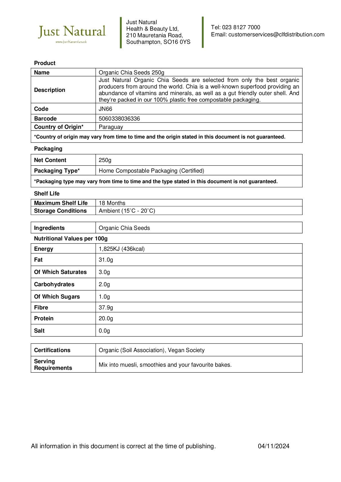Organic Chia Seeds 250g