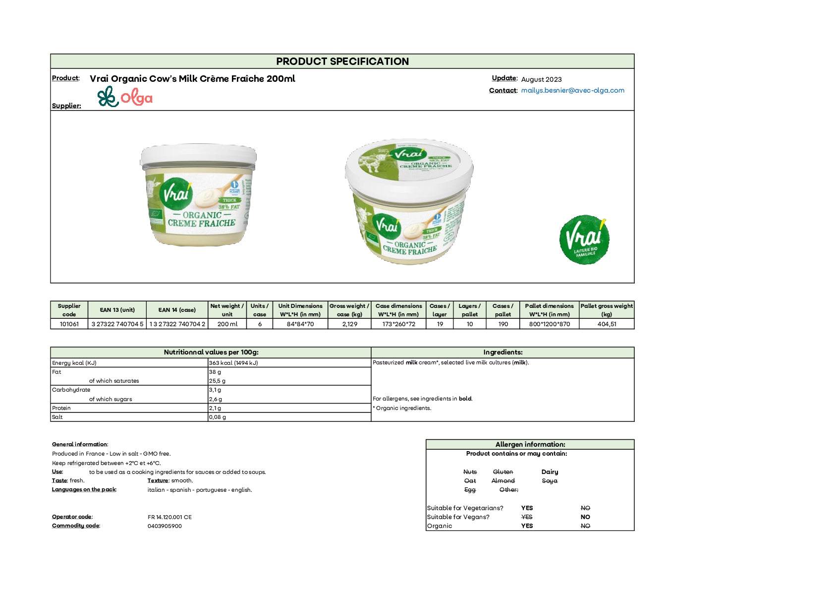 This tasty product has a nice thick and creamy texture. Ideal for a refined and gourmet cuisine, it can be used to make sauces or can be added to soups, stews and even purees.