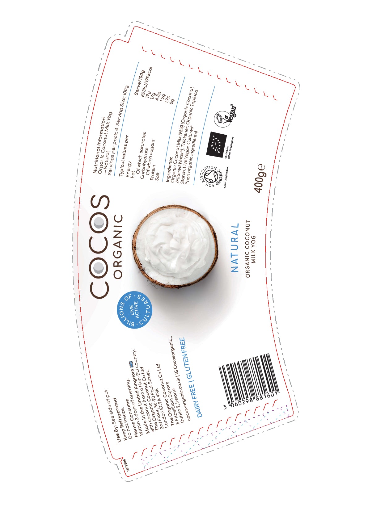 Made with 98% pure, organic coconut milk and our special blend of live vegan cultures to create a lusciously thick, creamy and tangy natural alternative to Greek style yoghurt. Made in our boutique coconuts only factory in Kent using traditional age-old methods Cocos Organic natural yoghurt alternative has a smooth and creamy texture with a mild coconut taste that contains billions of live bacteria.
