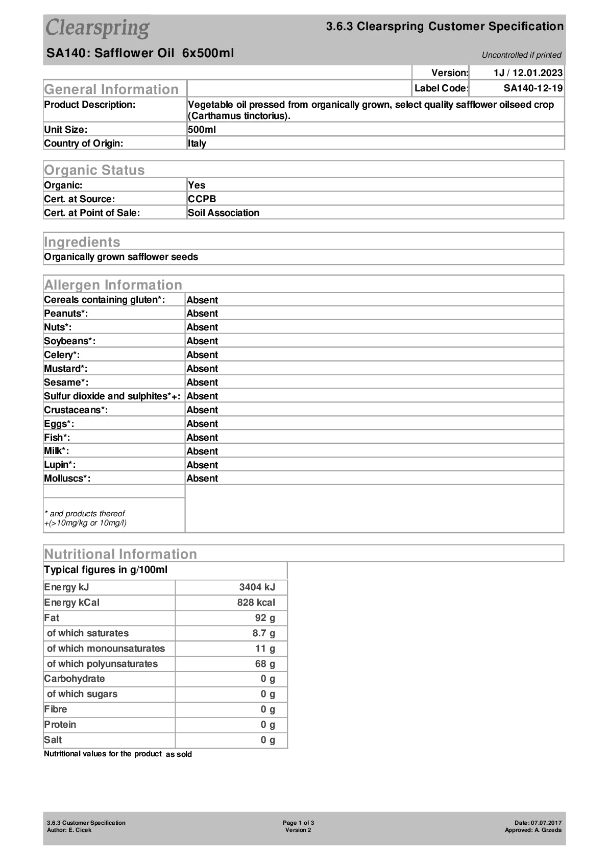 First, the finest quality certified organic seeds are carefully cleaned and gently cold-pressed at room temperature. The oil is then filtered twice through paper filters. Finally, the oil is nitrogen packed in anti-UV bottles. No bleach, chemical additives or solvents are used at any point.The final product is bursting with natural flavour. Furthermore, significant health benefits can be gained from the retention of inherent antioxidant characteristics, omega-9, omega-6 and omega-3 essential fatty acid and vitamins.