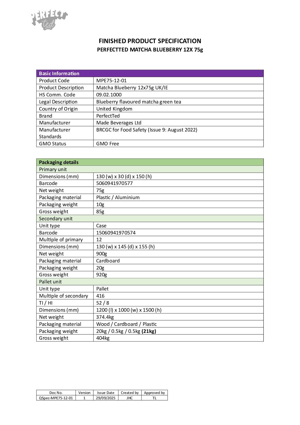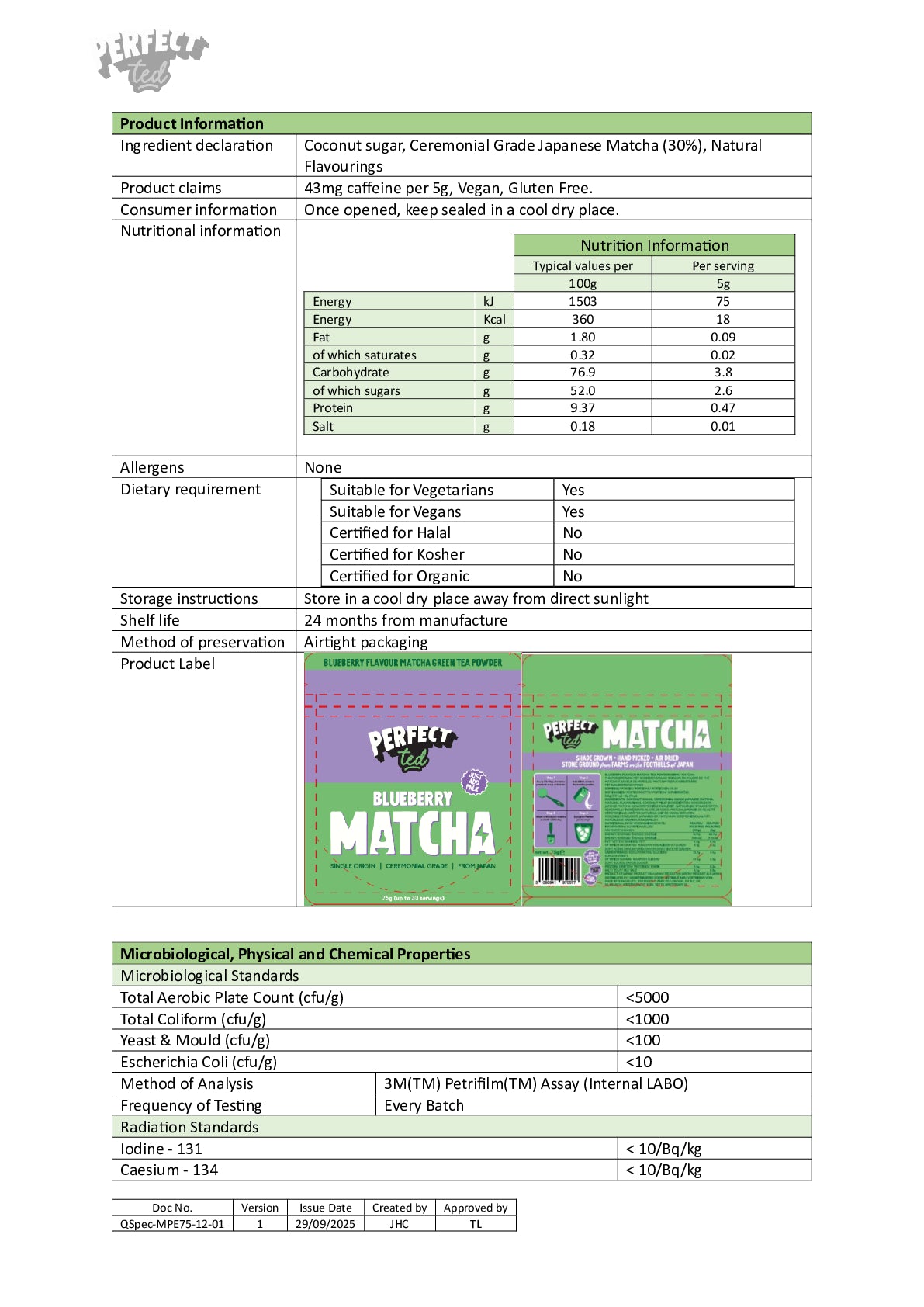 Blueberry flavour matcha green tea powder. Shade-grown, hand-picked, air-dried, stone-ground, ceremonial grade, non-GMO matcha. Matcha is a finely ground green tea powder celebrated for its vibrant colour, smooth taste, and powerful health benefits. Matcha delivers a concentrated dose of antioxidants and nutrients, while providing calm, sustained energy, thanks to a unique combination of caffeine and L-theanine.