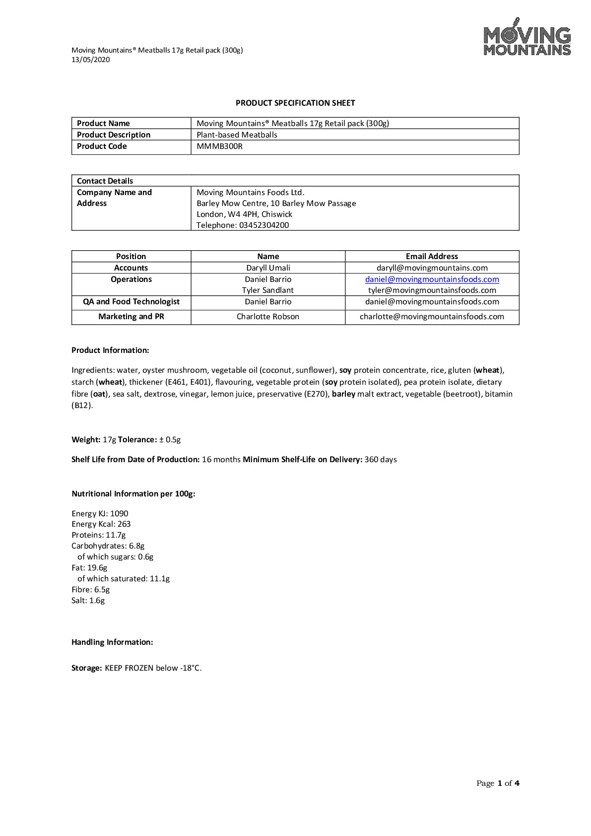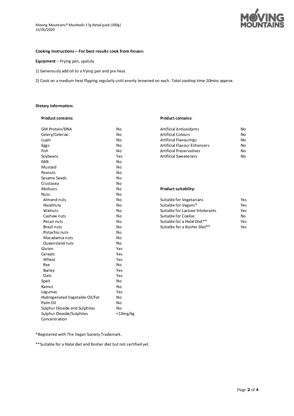Partly cooked, frozen. Approx 18 x 17g (+/- 0.5g) serves 2-3. High protein. Zero Cholesterol. Ideal for flexitarians.