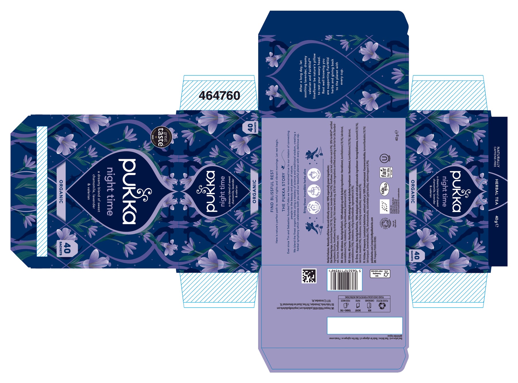 Pukka Organic Night time 40 herbal home compostable teabags with valerian, chamomile and oatflowers
