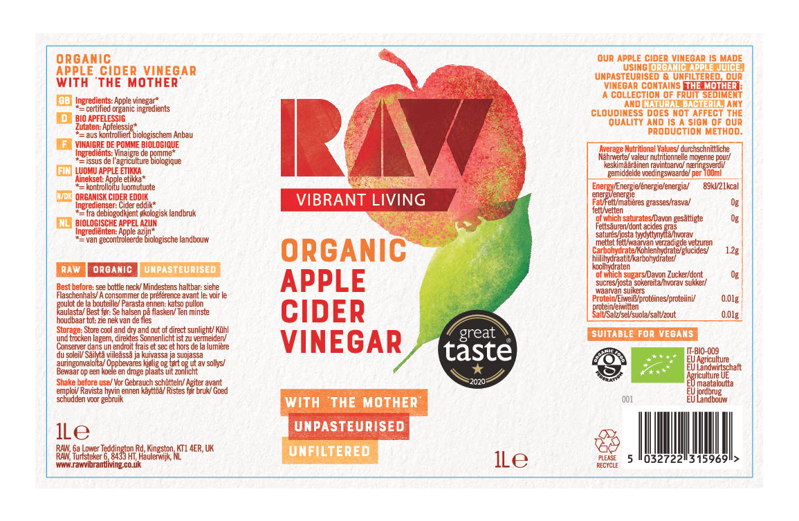 Raw Health Organic Raw Apple Cider Vinegar with the Mother 1lt