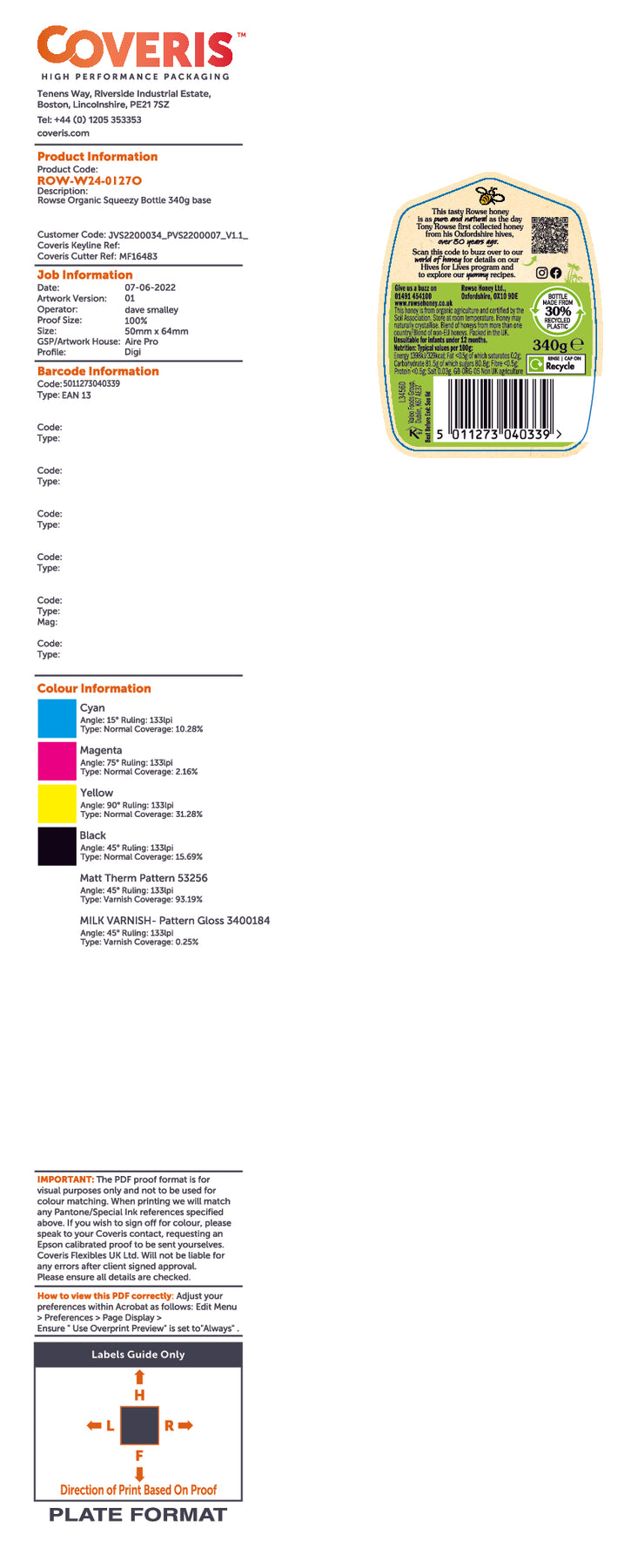 Rowse Organic Squeezy Honey 340g