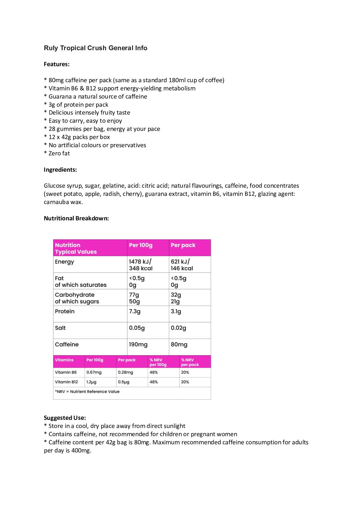 RULY Tropical Crush, Energy Gummies, 80mg Natural Caffeine, Guarana, B Vitamins