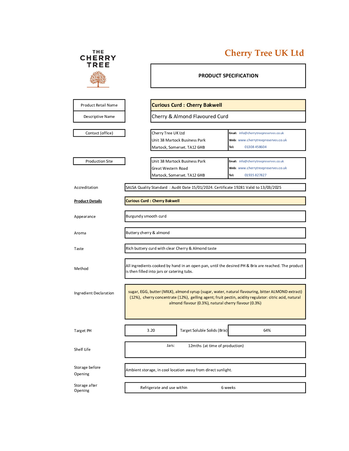 The Classic Cherry Bakewell, but in a curd! A sweet and sour cherry curd, with a twist of almond.