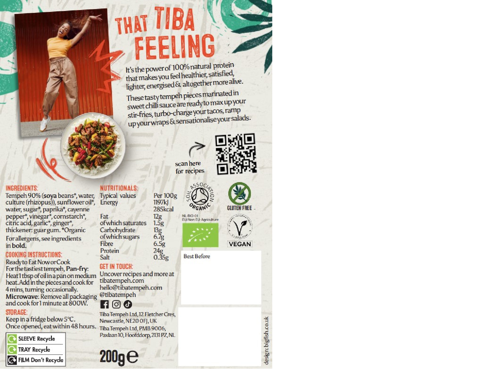 These tasty tempeh pieces are conveniently diced and marinated in a delicious sweet chilli sauce. Ready to max up your stir fries, turbocharge your tacos, ramp up your wraps and sensationalise your salads. Also ready to eat straight from the pack as a high-protein snack.